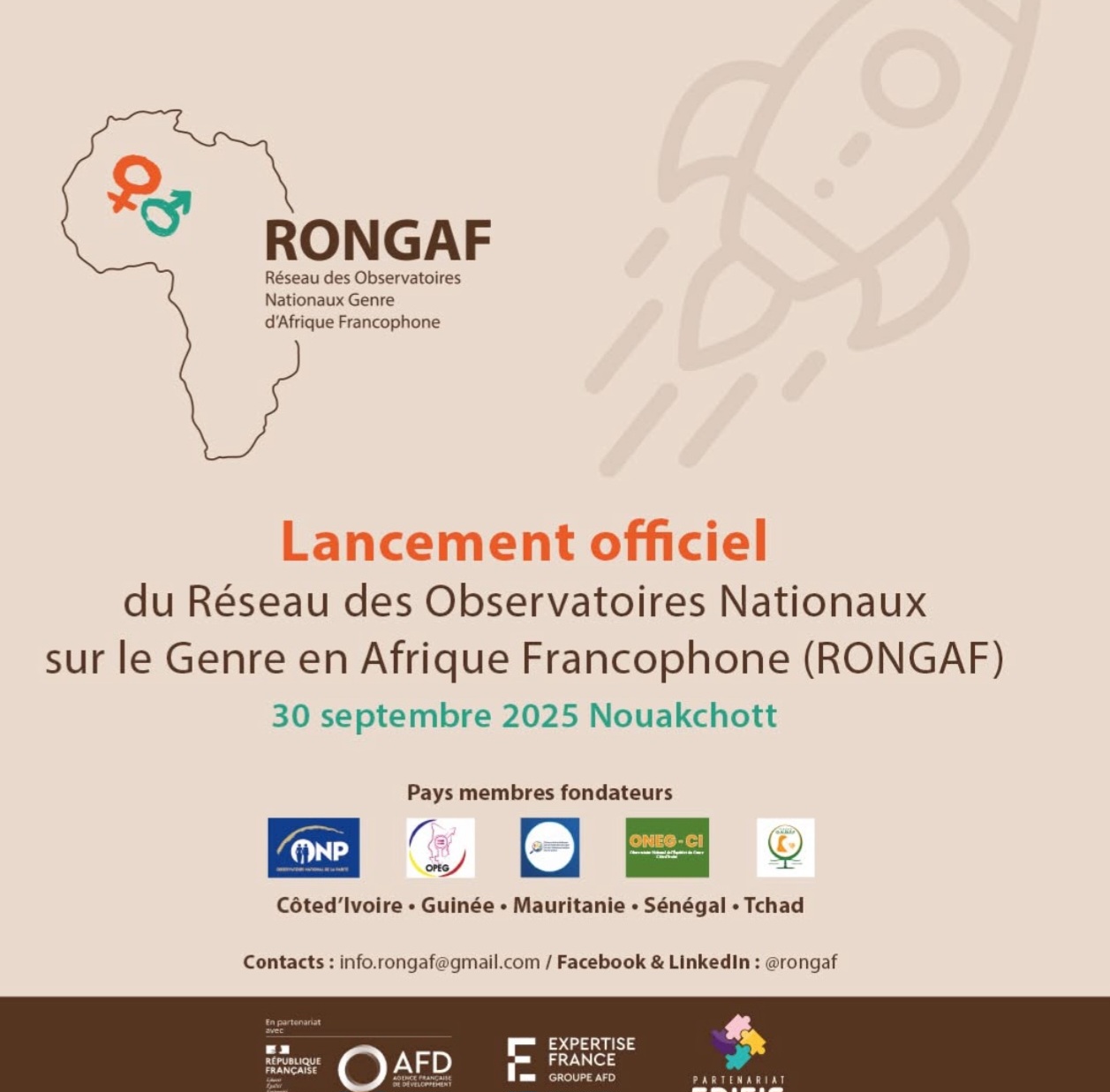 Le Réseau des Observatoires Nationaux du Genre en Afrique Francophone (RONGAF), organise, avec l’appui de l’assistance technique du partenariat EDIFIS et la GIZ « sa rencontre de constitution officielle et de planification stratégique » à Nouakchott du 30 septembre au 02 octobre 2025.